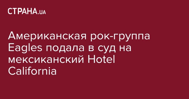 Известная американская рок-группа Eagles подала иск против владельцев отеля в Мексике за использование без разрешения названия "Hotel California", одной из самых известных песен группы. Об этом сообщает сообщает Reuters.