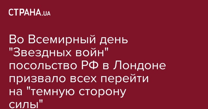 Посольство России в Великобритании в день "Звездных войн" пригласило всех желающих переходить на "темную" сторону. Соответствующая запись опубликована в Twitter диппредставительства.