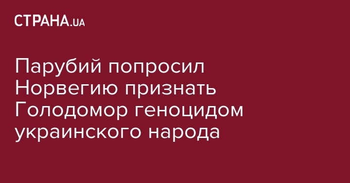 Председатель Верховной Рады Андрей Парубий в рамках встречи с президентом Стортинга (парламента) Норвегии Олемиком Томмессеном призвал Осло признать Голодомор геноцидом украинского народа. Об этом спикер украинского парламента сообщил на своей странице в Twitter.