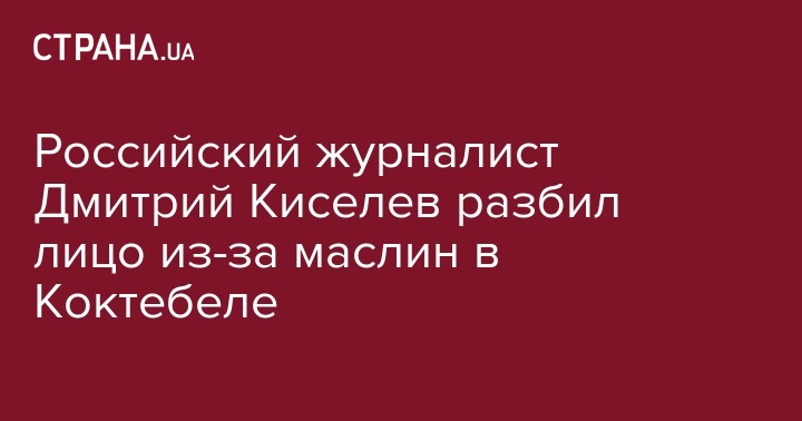 Российский журналист Дмитрий Киселев разбил лицо из-за маслин в Коктебеле