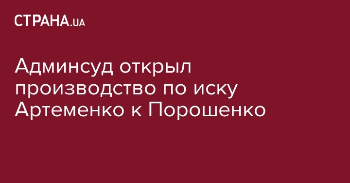 Высший административный суд Украины открыл производство по иску народного депутата Андрея Артеменко к президенту Украины Петру Порошенко. Об этом сообщает УНИАН со ссылкой на главного специалиста пресс-службы Высшего админсуда Галину Гаевскую.