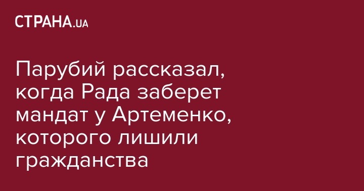 Верховная Рада рассмотрит вопрос о лишении нардепа Андрея Артеменко, гражданство Украины которого приостановил президент, мандата сразу после того, как соответствующее решение примет профильный комитет. Об этом заявил председатель парламента Андрей Парубий в понедельник, передает "Укринформ".