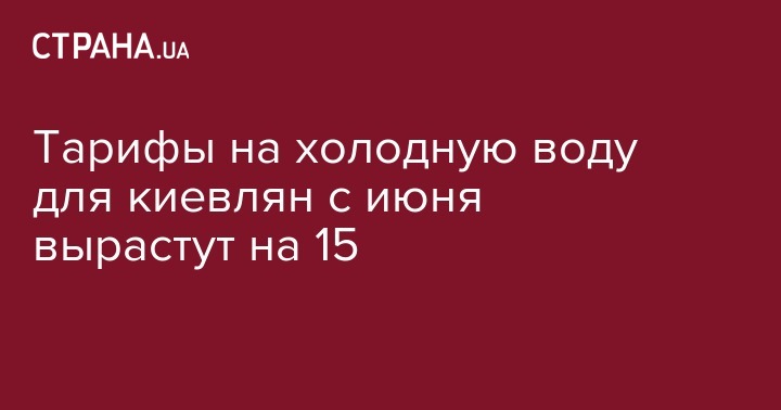 Национальная комиссия, осуществляющая регулирование в сфере энергетики и коммунальных услуг (НКРЭКУ), увеличила тариф на холодную воду для киевян на 14,7% или на 2,02 грн/ куб. м. Соответствующие постановления НКРЭКУ №551-552 от 26 апреля 2017 года было обнародовано в газете "Урядовый курьер" 11 мая, сообщает "Интерфакс-Украина".