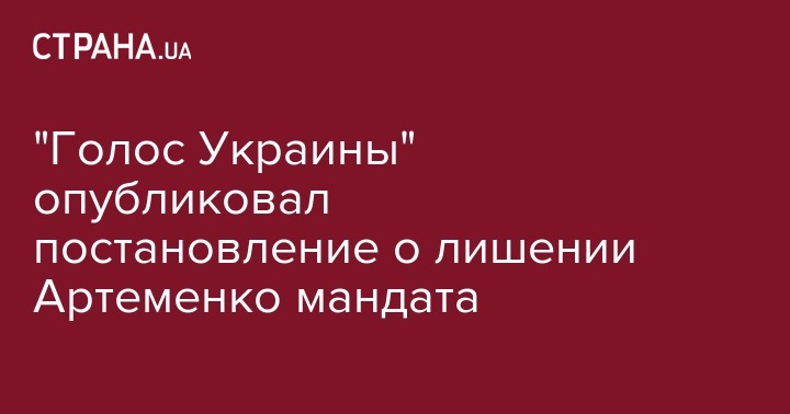 "Голос Украины" опубликовал постановление о лишении Артеменко мандата