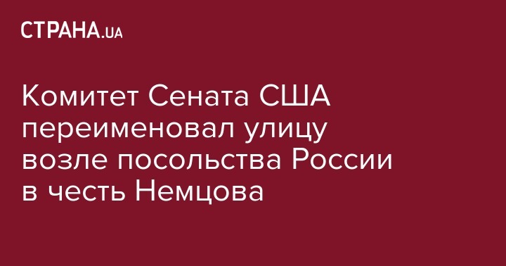 В США возле посольства России в Вашингтоне может появиться улица в честь убитого возле Кремля оппозиционного политика Бориса Немцова. Такую инициативу уже одобрил комитет сената США по внутренней безопасности и правительственным делам, сообщается на сайте ведомства.