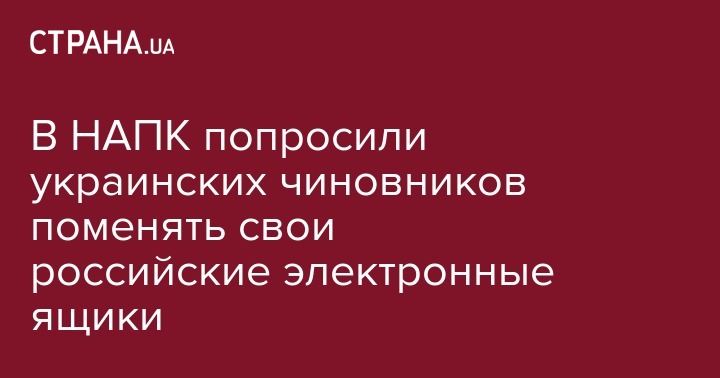 В Национальном агентстве по вопросам предотвращения коррупции (НАПК) обратились к украинским чиновникам с призывом изменить домен (интернет-адрес) своих электронных почтовых ящиков (e-mail) в реестре электронных деклараций.