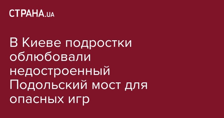 В Киеве подростки облюбовали опасный недостроенный Подольский мост, с которого рискуют сорваться вниз. Про опасные забавы школьников сообщил столичный активист Григорий Мельничук на своей странице в Facebook.
