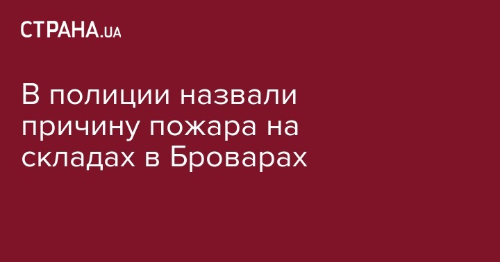 В Нацполиции Киевской области считают, что вероятной причиной пожара на складских помещениях в Броварах могло стать короткое замыкание. Об этом сообщает УНН.