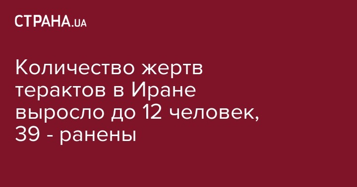 Количество жертв двух терактов в Тегеране - в парламенте Ирана и в мавзолее Хомейни - по последним данным, выросло до 12 человек, еще 39 получили ранения. Об этом сообщает в Twitter агентство Mehr со ссылкой на информацию медиков.
