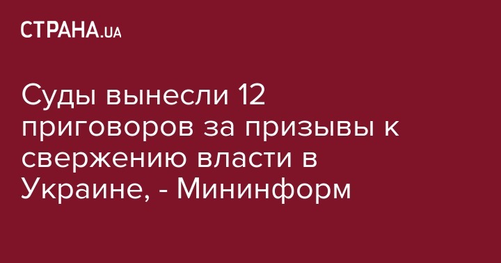 Украинские суды уже вынесли 12 приговоров в отношении граждан, которые в интернете призывали к насильственному изменению или свержению конституционного строя или к захвату государственной власти. Об этом заявил замминистра информационной политики Украины Дмитрий Золотухин, пишет "Укринформ".