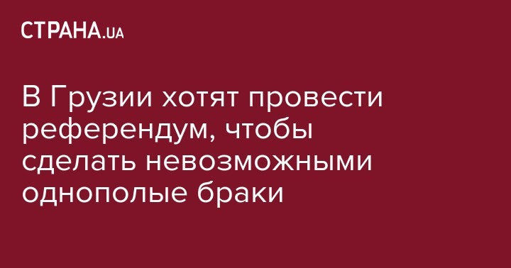 В Грузии планируют провести референдум, по результатам которого предлагается уточнить в Конституции, что брак — это союз между мужчиной и женщиной. Об этом сообщает «Интерфакс».