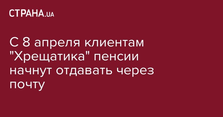 С 8 апреля клиентам "Хрещатика" пенсии начнут отдавать через почту