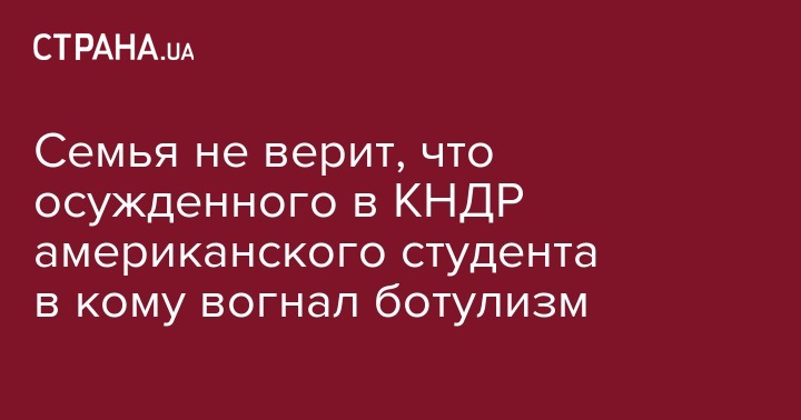 Семья студента из США Отто Уормбира, который был эвакуирован из КНДР в коме, не верят, что парень попал в это состояние из-за ботулизма. Именно такую версию озвучили власти Северной Кореи.