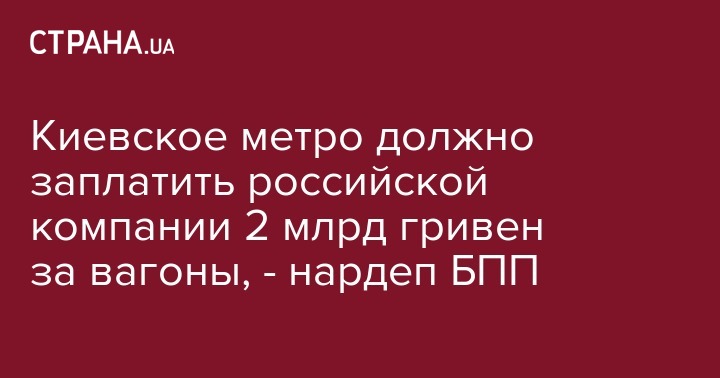 Киев должен заплатить российской компании "Укррослизинг" 2 млрд гривен за вагоны метро. Об этом сообщил нардеп от БПП Дмитрий Белоцерковец в Facebook.