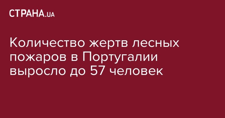 Число жертв крупного лесного пожара в центральной части Португалии увеличилось до 57 человек. Об этом сообщает Reuters.