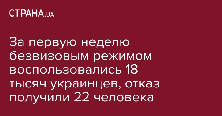 За первую неделю безвизовым режимом воспользовались 18 тысяч украинцев, отказ получили 22 человека