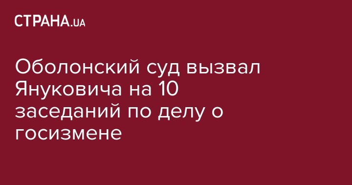 Оболонский районный суд Киева вызывает бывшего президента Виктора Януковича на 10 ближайших заседаний суда по делу о государственной измене.