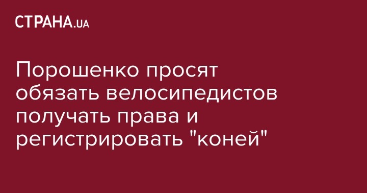 Президента Украины призвали законодательно обязать всех украинских велосипедистов получить водительские удостоверения и зарегистрировать свои транспортные средства. Соответствующая петиция № 22/037934-еп опубликована на сайте президента Украины.
