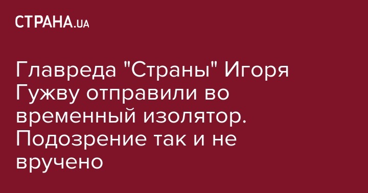 Главного редактора интернет-газеты "Страна.ua" Игоря Гужву только что отправили в изолятор временного содержания на Косогорном переулке в Киеве. Об этом в Facebook сообщила адвокат Елена Лукаш.
