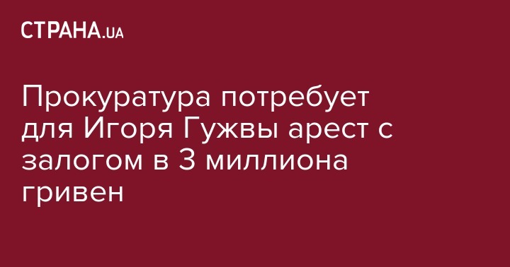 Сегодня, 24 июня, перед заседанием суда пресс-секретарь прокуратуры Надежда Максимец заявила, что прокурор будет настаивать на содержании под стражей для главреда "Страны" Игоря Гужвы с альтернативой в виде залога в размере 450 минимальных зарплат. Это примерно 3 млн грн.