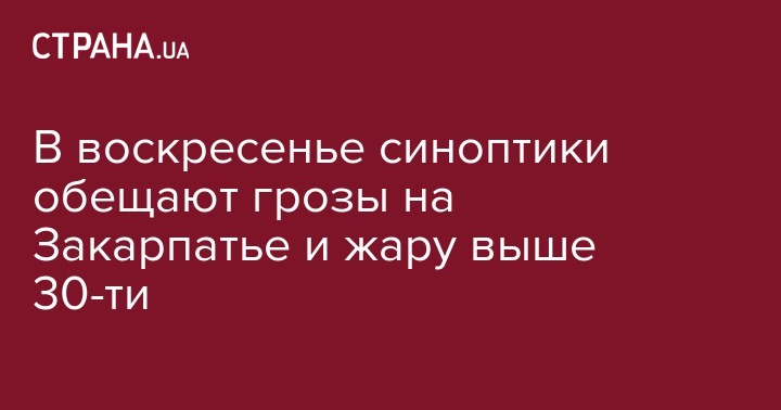 В воскресенье синоптики обещают грозы на Закарпатье и жару выше 30-ти