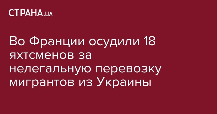 Межрегиональный суд французского города Рен вынес в четверг приговоры 18 украинским яхтсменам по обвинению в создании группы для перевозки иммигрантов из Украины. Осужденные получили от 20 месяцев до восьми лет тюремного заключения. Об этом пишут "Вести.Экономика".