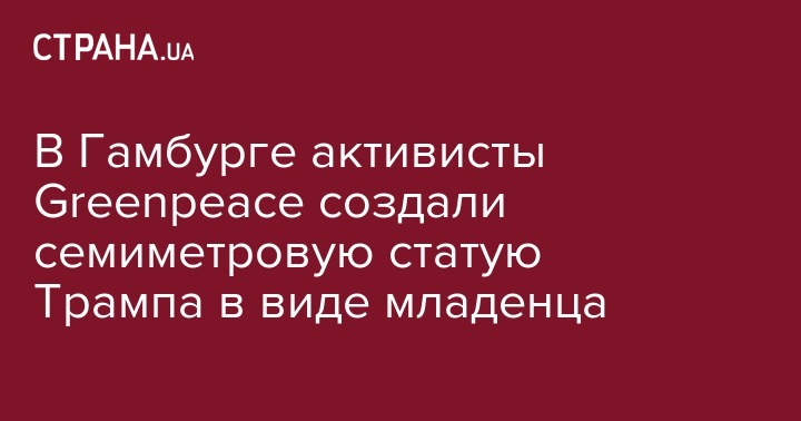В Гамбурге активисты Greenpeace установили статую президента США Дональда Трампа в виде младенца, который разрывает экземпляр Парижского соглашения. Об этом сообщает пресс-служба Greenpeace на своей странице в Twitter.