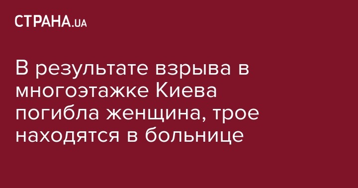 Одна женщина умерла, еще три человека находятся в больнице в результате взрыва в трехэтажном жилом доме в Голосеевском районе Киева. Об этом сообщает УНН.