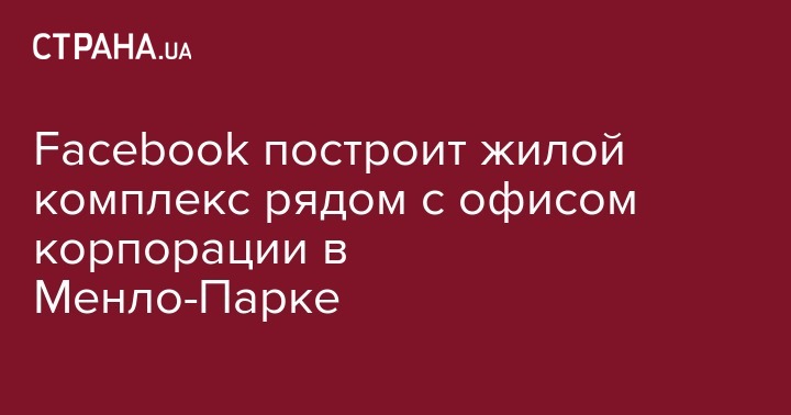 Facebook построит жилой комплекс рядом с офисом корпорации в Менло-Парке