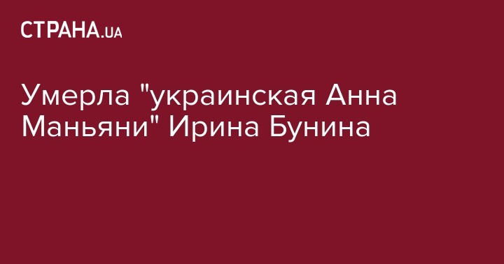 Умерла "украинская Анна Маньяни" Ирина Бунина