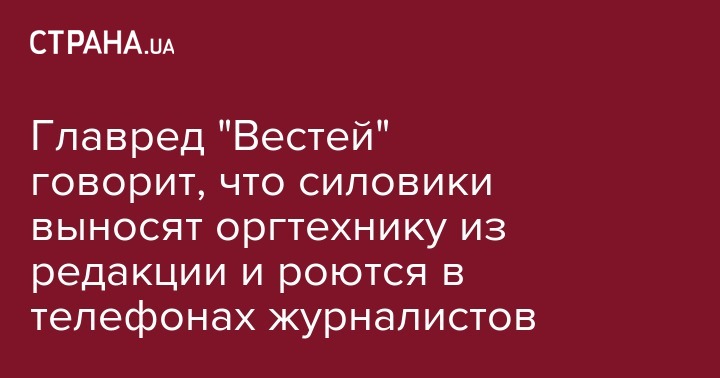 Ранее "Страна" сообщала, что сотрудникам "Вестей" пообещали обыски до ночи и заперли в переговорной комнате, - источник. Главный военный прокурор Анатолий Матиос заявил, что обыски в редакции "Вестей" в киевском торговом-центре "Гулливер" проходят по делу экс-министра доходов и сборов времен Януковича Александра Клименко. Один из сотрудников холдинга анонимно сообщил "Стране", что в обыскиваемом офисе находились примерно 25 работников газеты и около 10 - радио.