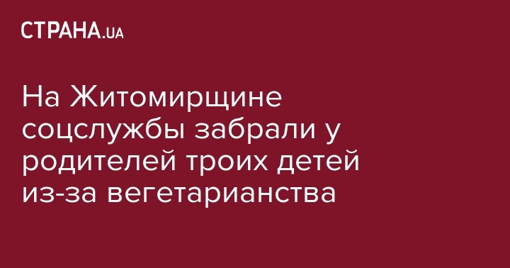 В Житомирской области в селе Буки социальные службы отобрали троих детей у родителей из-за подозрения в плохом питании. Соседи пожаловались, что родители-вегетарианцы плохо кормят детей из-за чего те постоянно просят есть. Об этом сообщает ТСН.
