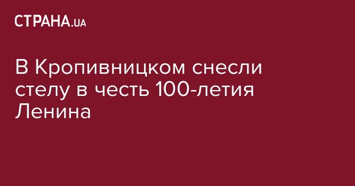 18 июля в Центрaльном сквере Кропивницкого коммунальщики демонтировали стелу, установленную в честь 100-летия со дня рождения Ленинa, сообщает УНН.