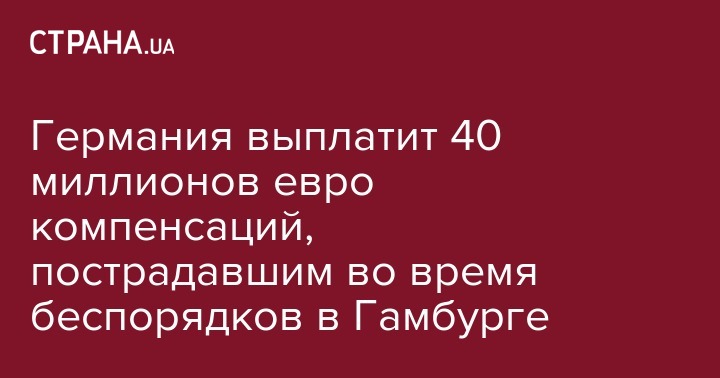 Власти Гамбурга и федеральное правительство Германии выделят до 40 млн евро на возмещение убытков, пострадавшим во время беспорядков в Гамбурге на саммите G20. Об этом сообщает DW.