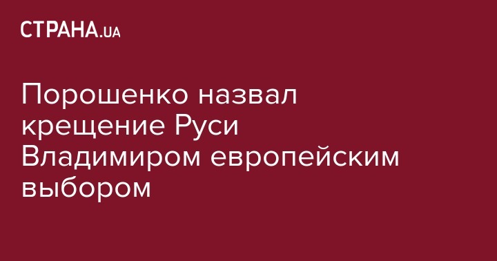 Президент Петр Порошенко назвал крещение Киевской Руси в 988 году князем Владимиром Великим "европейским выбором". Об этом он написал в Facebook.