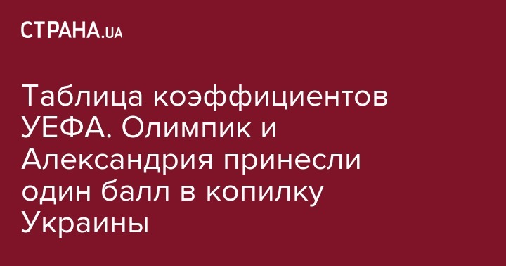 Таблица коэффициентов УЕФА. Олимпик и Александрия принесли один балл в копилку Украины