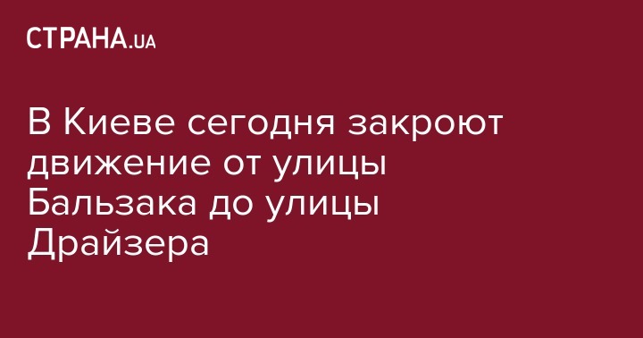 В Киеве сегодня закроют движение от улицы Бальзака до улицы Драйзера