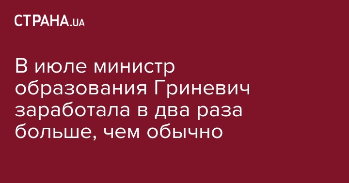 В июле министр образования Гриневич заработала в два раза больше, чем обычно
