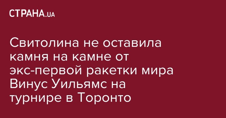 Знаменитая украинская теннисистка, пятая ракетка мира украинка Элина Свитолина разгромила девятую ракетку мира американку Винус Уильямс и пробилась в четвертьфинал престижного турнира в Торонто (Канада). Об этом сообщается на сайте Женской теннисной ассоциации (WTA).