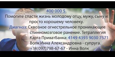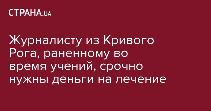 На лечение Вячеслава Волка, журналиста криворожского интернет-сайта, которого во время военных учений ранили в шею, требуется $400 тысяч. Так как Минобороны, организовавшее эти учения, отстранилось от этой проблемы, родные и коллеги Вячеслава объявили о сборе средств.