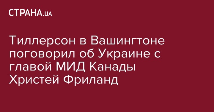 Государственный секретарь США Рекс Тиллерсон и министр иностранных дел Канады, этническая украинка Христя Фриланд во время встречи в Вашингтоне обсудили текущую ситуацию в Украине, говорится на сайте Госдепа.