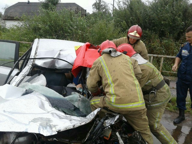 Погибшая женщина находилась на заднем пассажирском сидении. Спасатели достали ее через заднюю дверь.
