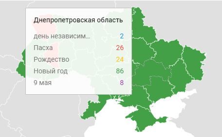 Мы сравнили популярность Дня независимости и перечисленных президентом праздников за 2016 год, добавив к общему списку 9 мая - День победы. В целом по Украине предпочтения разделились так: