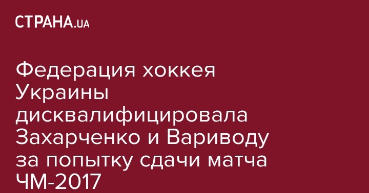 Совет федерации дисквалифицировал хоккеистов Эдуарда Захарченко и Владимира Вариводу от участия в соревнованиях с последующей передачей соответствующих материалов в правоохранительные органы, международную федерацию хоккея и министерство молодежи и спорта Украины", – заявил Бревзин.