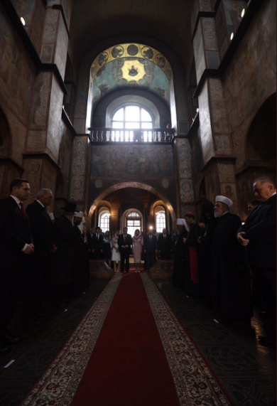 "Боже великий, единый, нам Украину храни! Вместе с Мариной молимся за нашу страну и просим Божьего защиты и благословения ее защитникам", - говорится в сообщении.