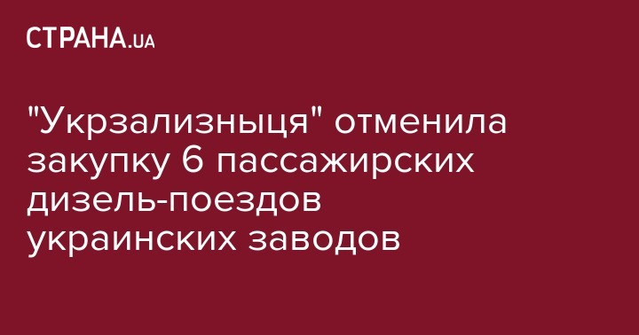 "Укрзализныця" отменила торги на закупку 6 пассажирских дизельных поездов для региональных перевозок, состоящие из трех вагонов стоимостью 1,062 млрд грн. Об этом сообщает "Интерфакс-Украина".