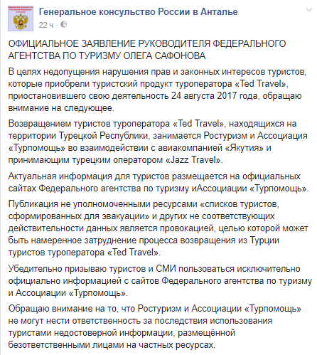 Сейчас Ростуризм, ассоциация "Турпомощь" и другие организации и ведомства, связанные с этим, пытаются найти выход из ситуации.