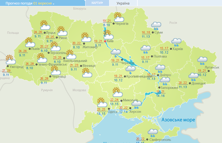 В Киеве 1 сентября обещают переменную облачность без осадков. Днем +19...+21.