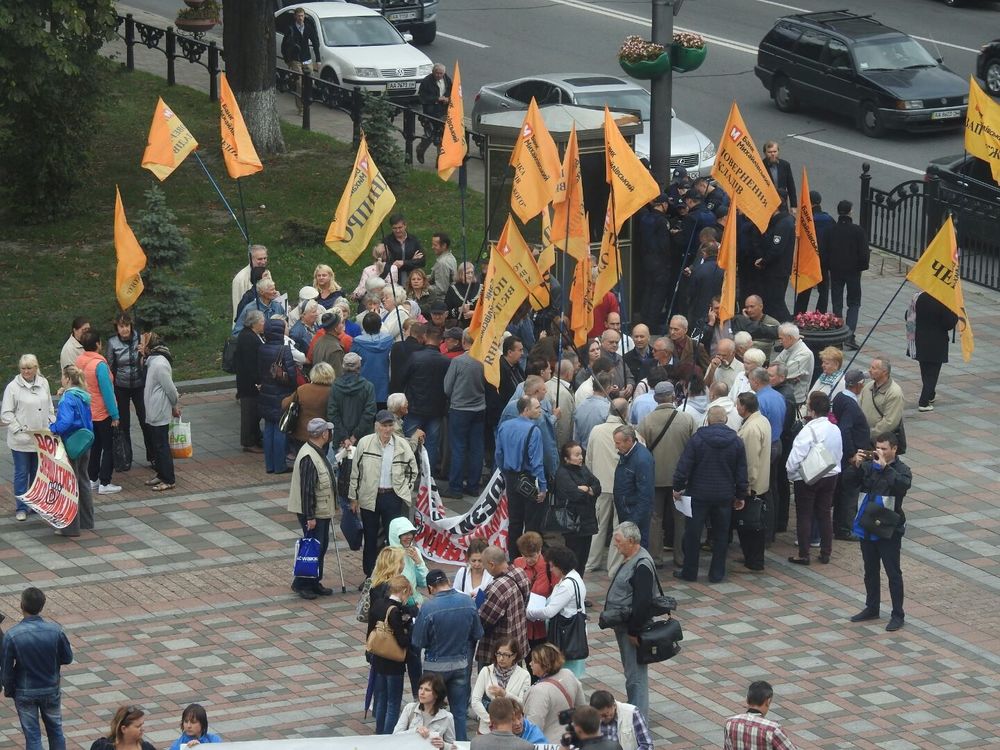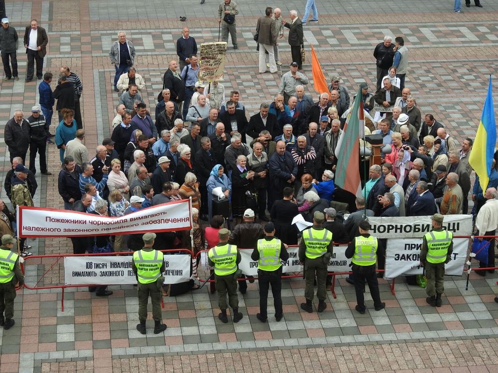 Кроме того, на площадке перед Радой митингуют около полсотни чернобыльцев.