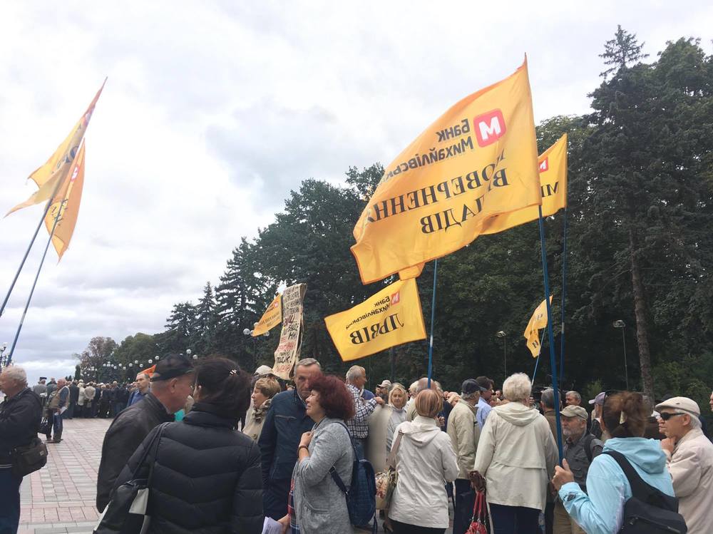Как сообщил корреспондент "Страны", под здание парламента пришли и обманутые вкладчики банка "Михайловский", их около ста человек.